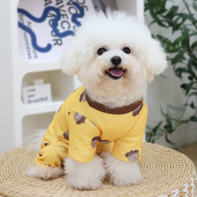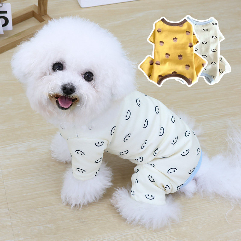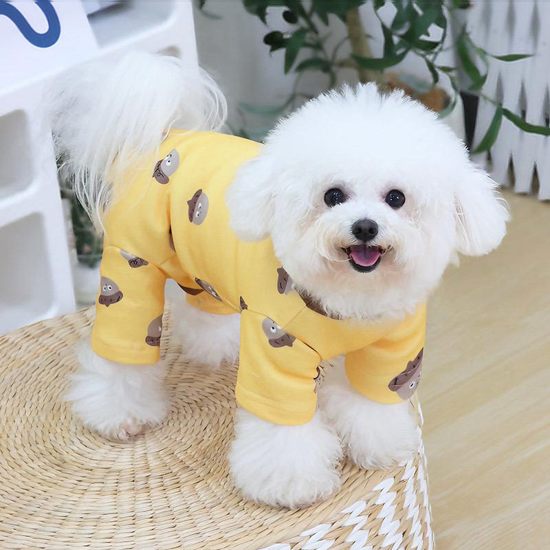 This lightweight four-leg dog outfit is designed for everyday wear during spring and autumn, offering gentle coverage for pets that benefit from added protection around the body and belly area. The thin fabric construction provides a comfortable layer without added bulk, making it suitable for regular daily use across changing seasons.