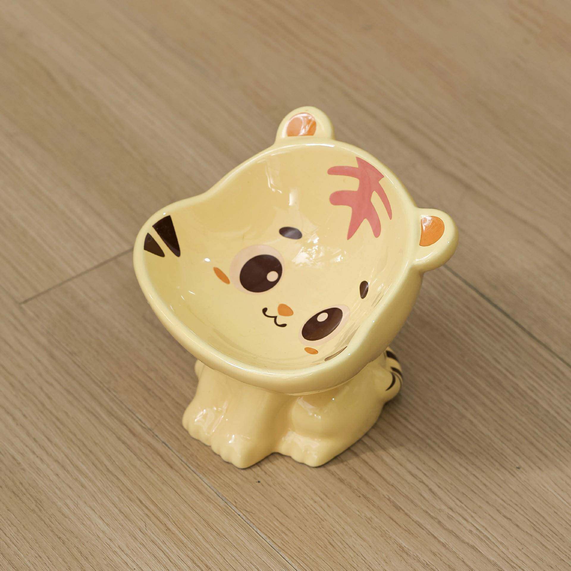 This lion-shaped ceramic cat bowl features a wide opening and an elevated profile designed for everyday feeding and drinking routines. The smooth ceramic surface is suitable for serving food or water and is easy to clean for regular indoor use. Its raised structure offers a comfortable bowl position while the rounded base supports stable placement on flat surfaces. With a playful cartoon-inspired design, this bowl adds a decorative touch to pet spaces while fitting naturally into daily care routines for cats.
