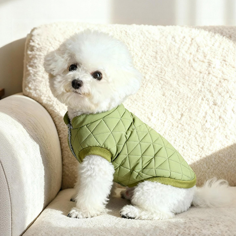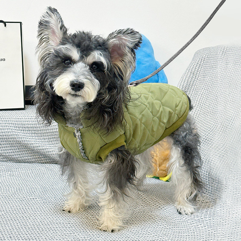 Suitable for small dog breeds such as Bichon Frise, Schnauzer, and similar-sized companions, this cold-weather pet coat is ideal for daily walks, short outdoor activities, or casual indoor use during colder seasons. The simple structure makes it easy to put on and take off, helping reduce stress for both pets and owners.