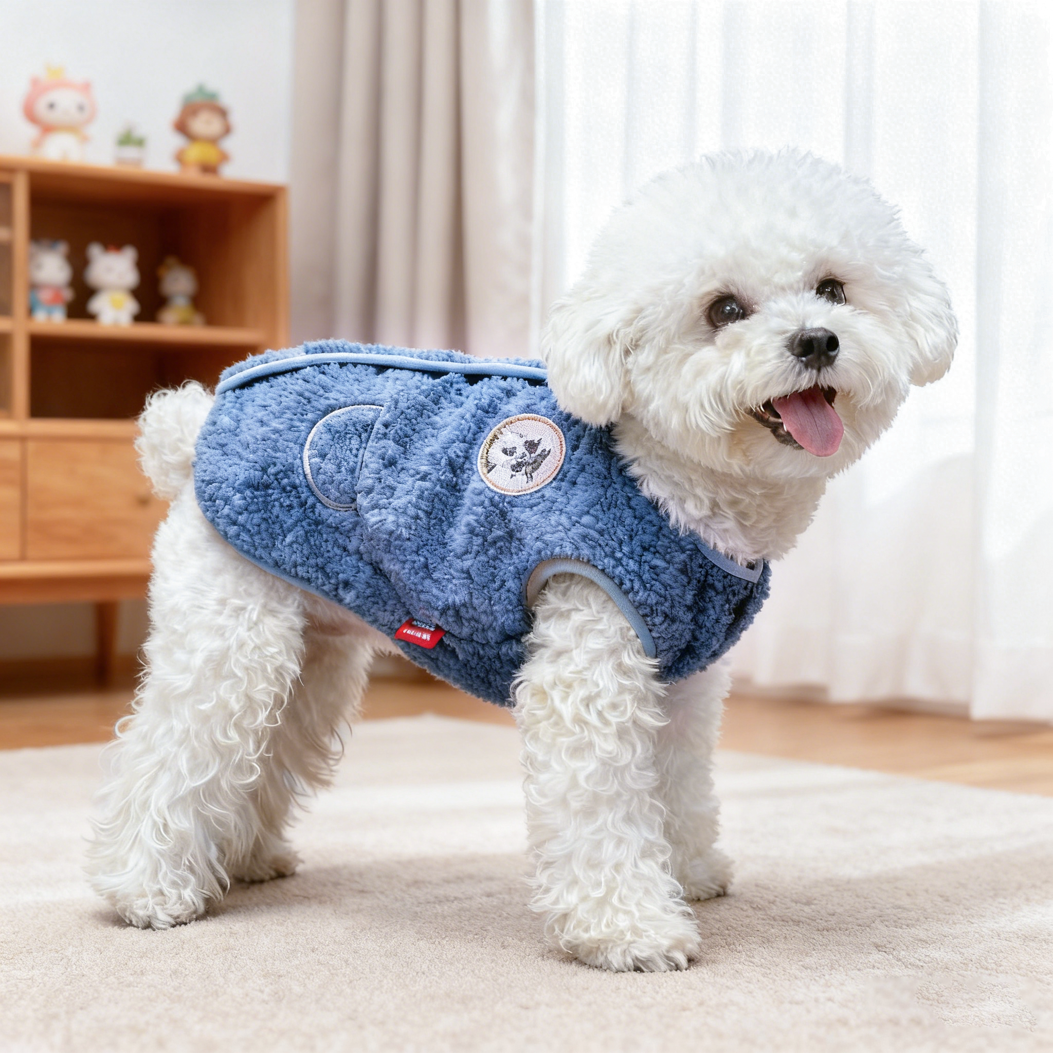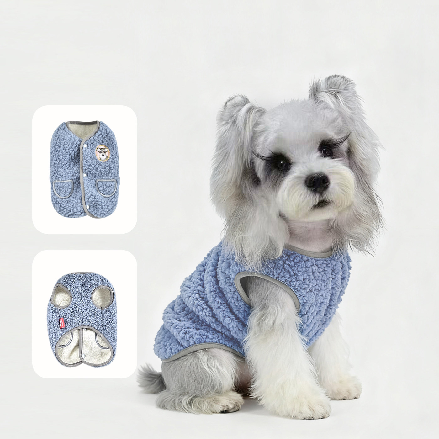 Made for small breeds such as Schnauzer-type and Bichon-style dogs, this vest-style pet coat offers simple body coverage that helps keep fur cleaner during daily walks and casual outdoor activities. The easy-to-wear design allows pets to move freely without restriction, making it suitable for routine use throughout the cold season.